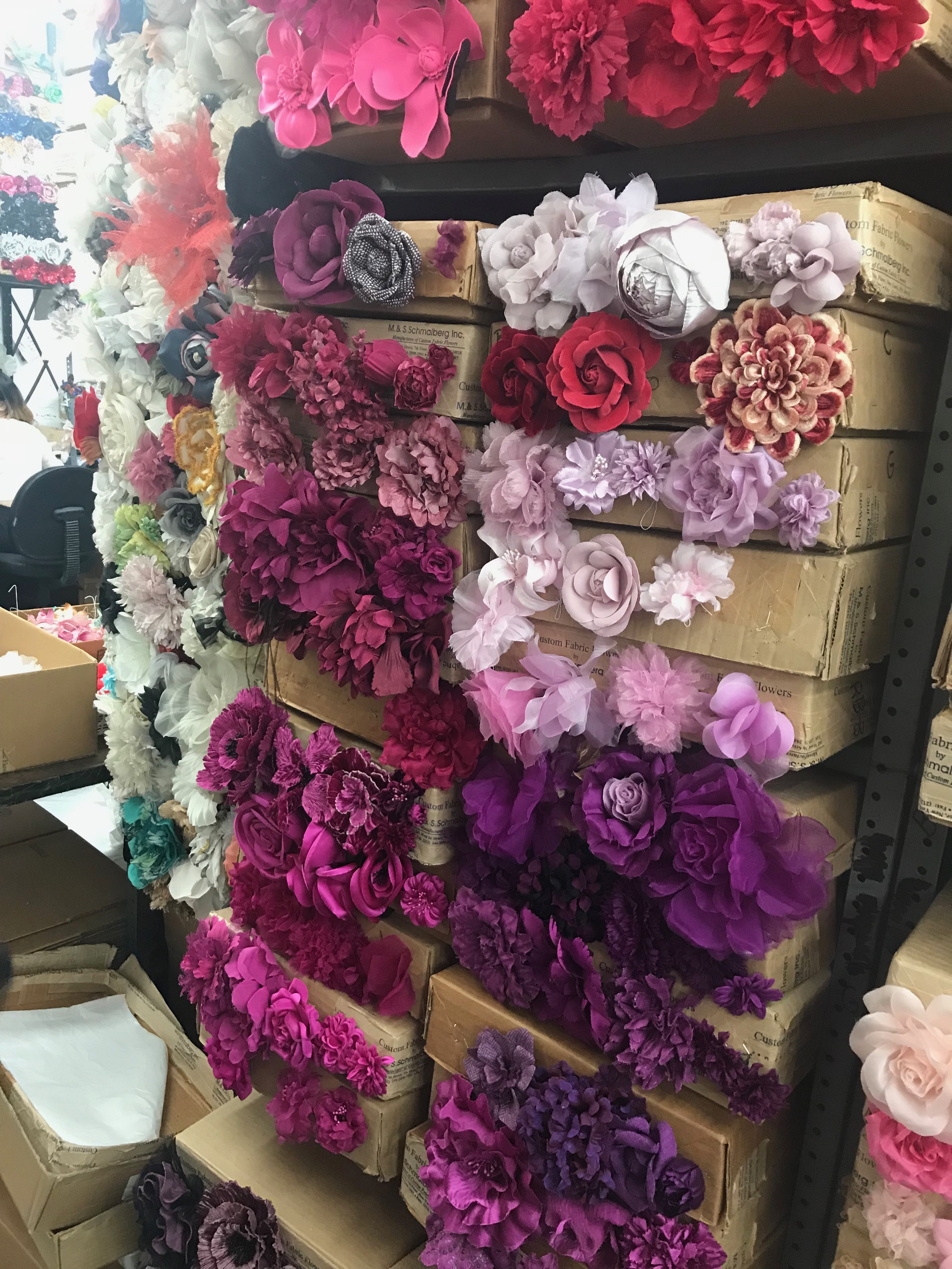 Visiting M&S Schmalberg was a really cool and educational experience for me today. Warren Brand, the owner, gave us a great tour of the shop and the work room. M&S Schmalberg has been in business for 100 years in New York City and still continues to be popular with fashion designers and interior designers. Their fabric flowers have been used by designers like Zac Posen, Zimmerman, and Marchesa. Their work has also been featured on Sex and the City and Anne Hathaway on the red carpet. M&S Schmalberg also does a lot of work for non-celebrities. They are able to create single flowers and bouquets for your home.